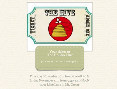 One of my creative friends is having a sweet little boutique. If you want a beautiful drive head on up to Mountian Green and check it out!! (lots of cute stuff to see, taste and buy) You also might want to peek at her blog www.hollyhocksandhoneybees.blogspot.com :)